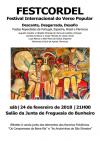 O FESTCORDEL passará pela Salão da Junta de Freguesia do Bunheiro, sábado, 24 de fevereiro às 21H30, com a atuação de Augusto Canário e Cândido Miranda (Portugal); Geraldo Amâncio e Jorge Macedo (Brasil); Lupe Blanco e Alba Maria (Espanha) e Muhamed